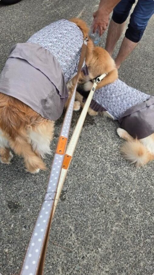 ゴールデンレトリバーの可愛いお嬢様方🐶には、くすみドットのカラー&リードを💕