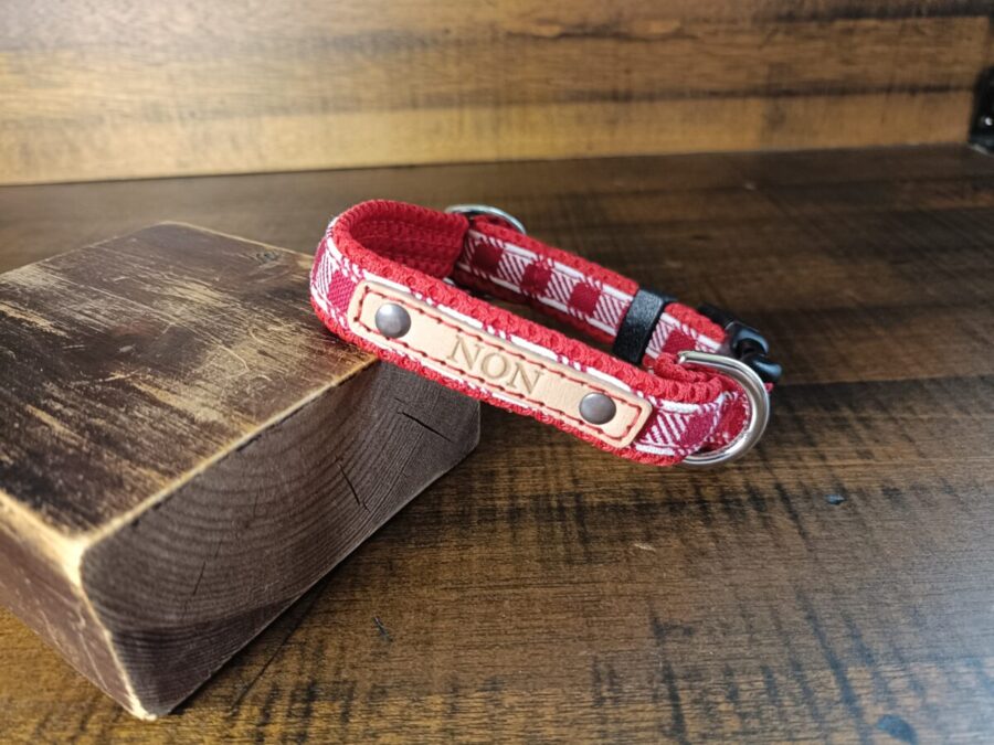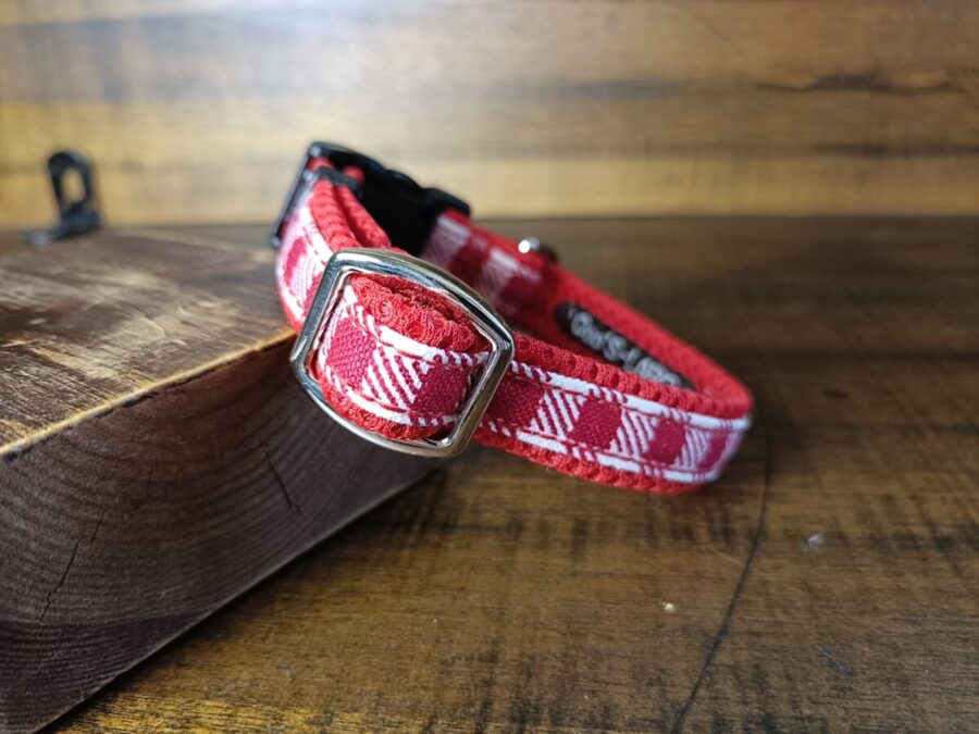 そんなのんちゃんにはギンガムチェックの可愛いクッション首輪を🤗