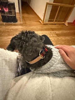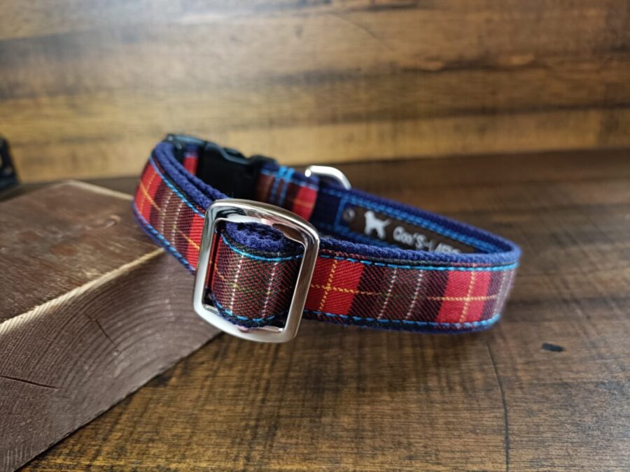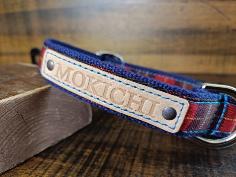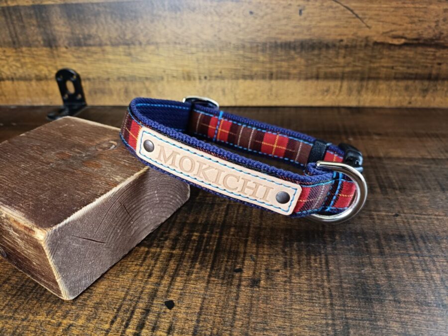 もきち君のモノトーンの被毛にレッドチェックが可愛くて、とてもよく似合っていると思いますよ〜!