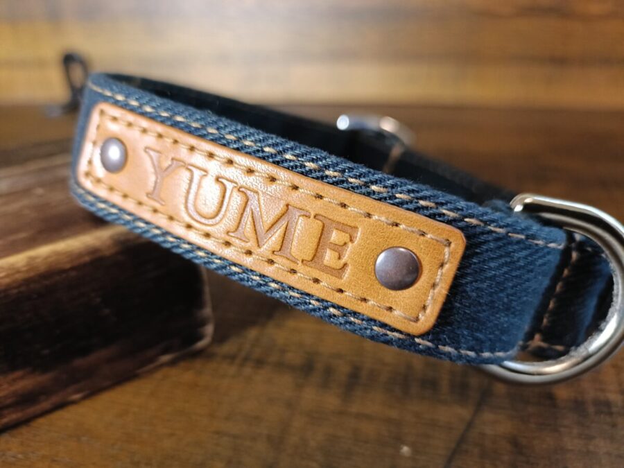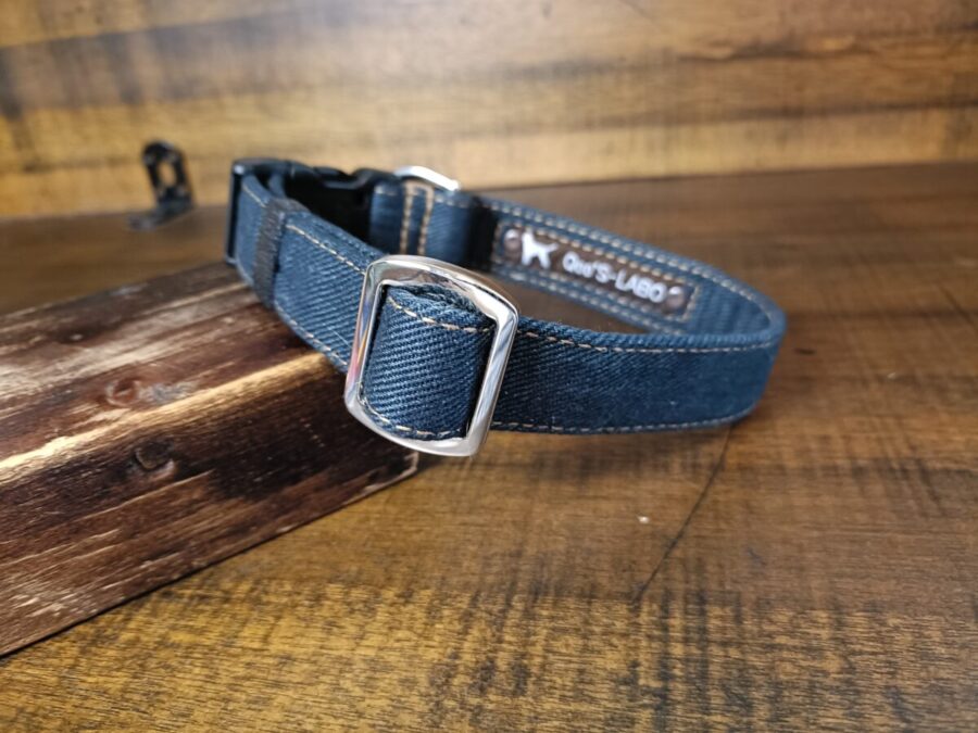ネイビーデニムの首輪で、アクティブなお出かけ楽しんでくださね〜🤗